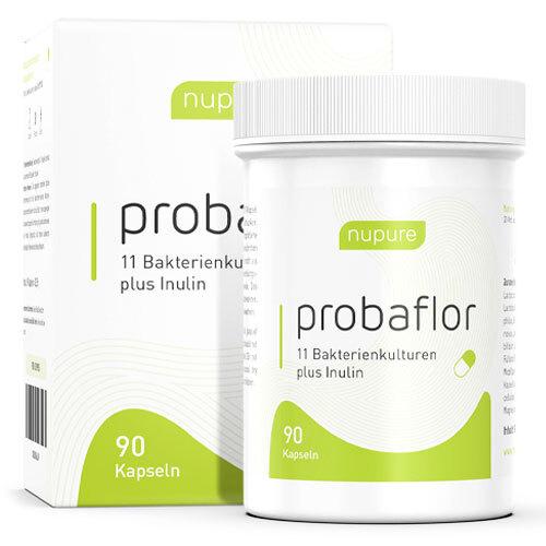 Nupure probaflor enthält 11 ausgewählte Stämme Milchsäurebakterien und Bifidobakterien, die natürlicherweise den menschlichen Darm besiedeln. Dort sind sie Teil der sogenannten Darmflora. Nupure probaflor enthält mindestens 20 Mrd. KBE zum Ende der Haltbarkeit. Zusätzlich enthält jede Kapsel 30 mg Inulin. Dieser natürlich aus der Zichorie gewonnene Ballaststoff wird vom Menschen nicht verstoffwechselt. Gelangt er unverdaut in den Darm, kann er dort Bakterien als Nahrung dienen.